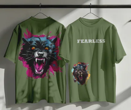Oversized combed Terry cotton t-shirt back & front print with Wolf Fearless.