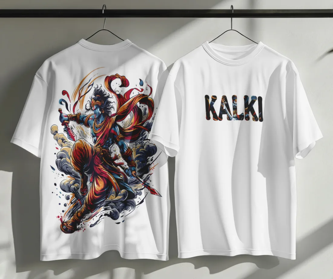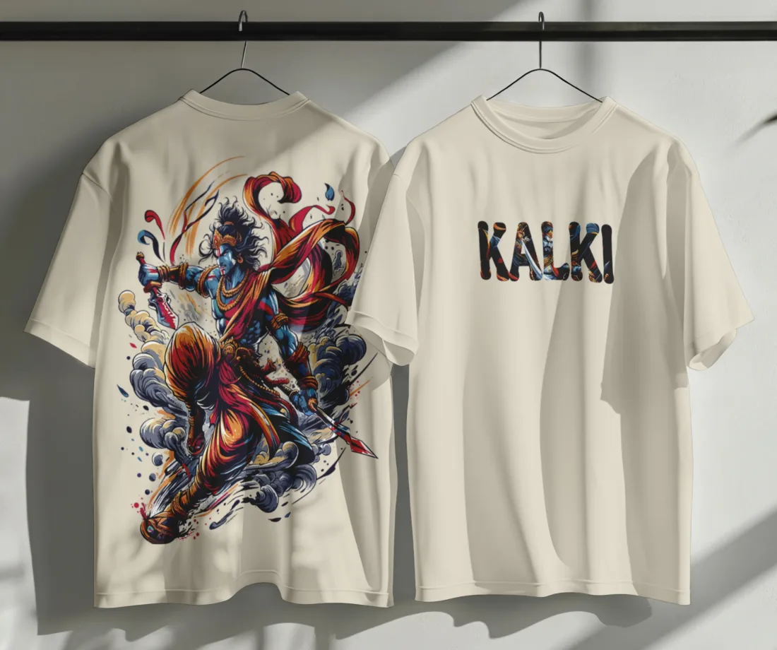 Buy Oversized combed cotton customize tshirt print with lord Kalki.