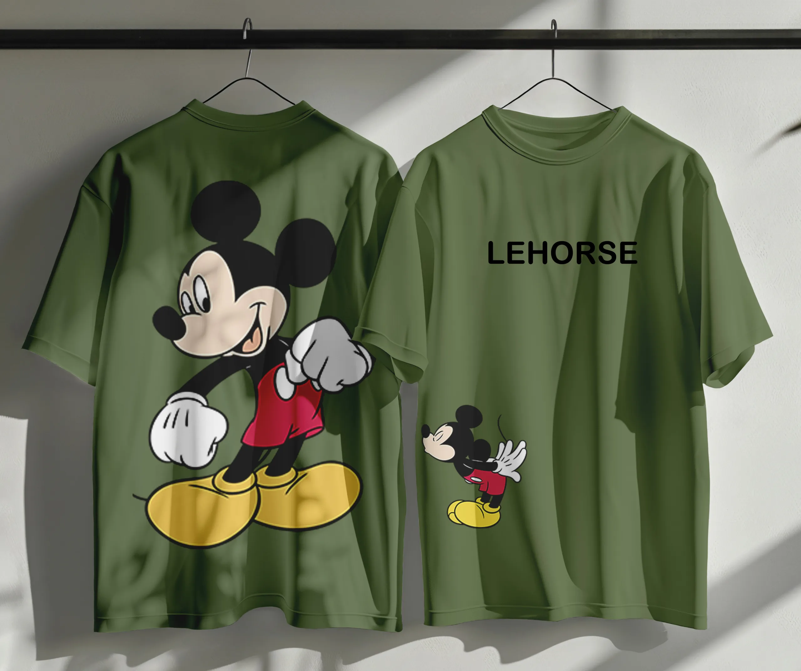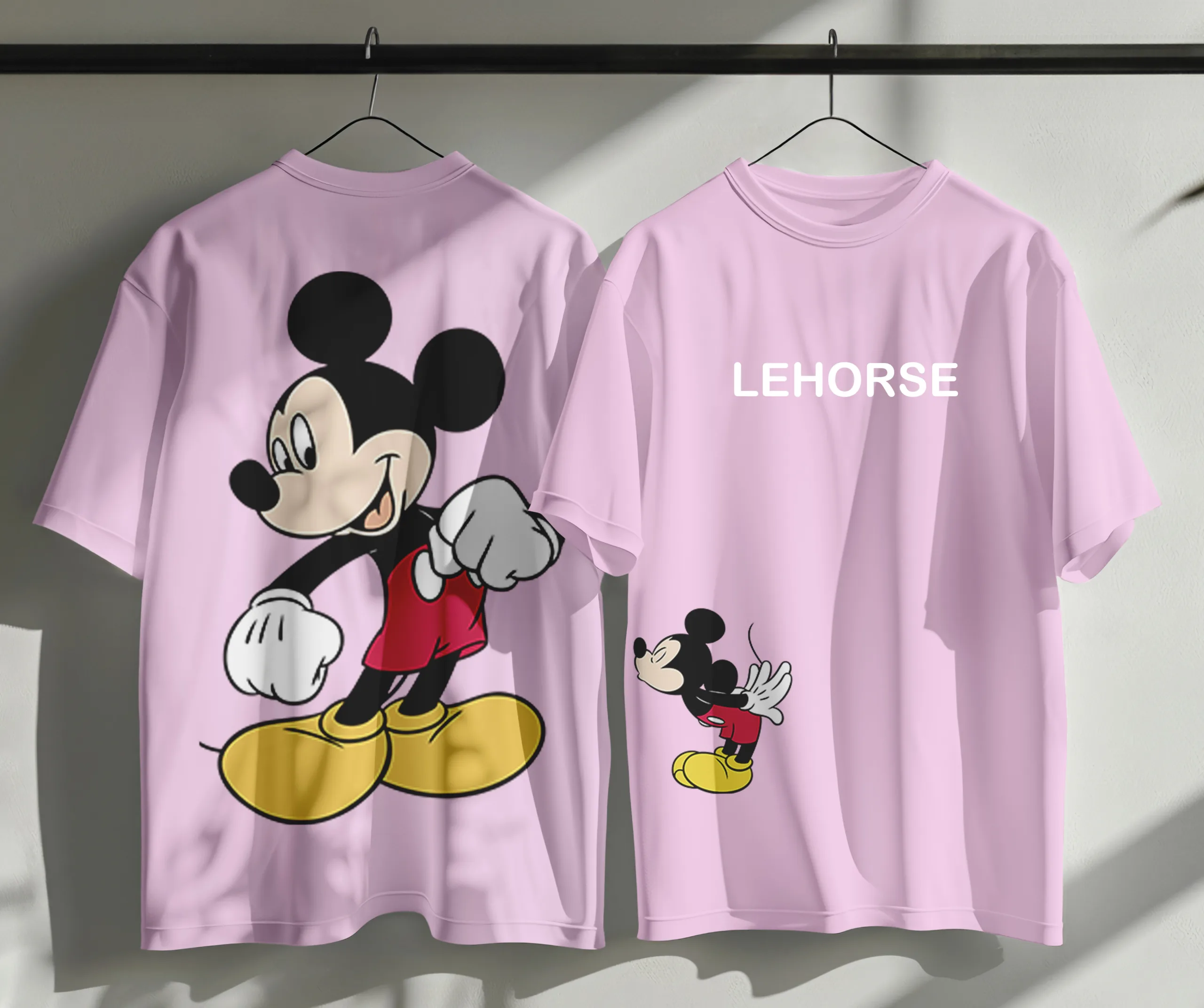 Oversized combed Terry cotton customize tshirt back & front print Micky Mouse.
